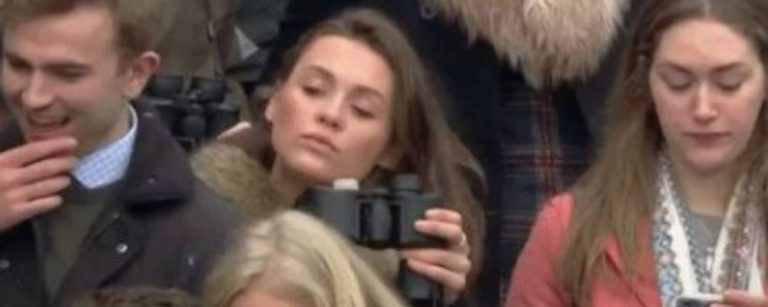 El hecho ocurrió este 1 de enero en la ciudad de Cheltenham y se transformó en viral gracias a la transmisión del evento de esta jornada por televisión. Y es que la chica fue captada bebiendo desde una «petaca» con forma de binocular mientras se realizaban las carreras de caballos.