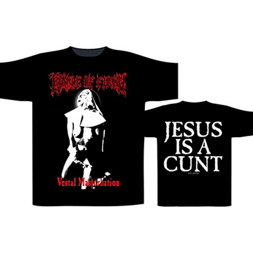 La conocida rapera Iggy Azalea ha escandalizado a propios y extraños tras posar con la polera más polémica de Cradle of Filth, en cuya parte frontal aparece una monja masturbándose junto al logo del grupo, mientras que en la trasera se puede leer la frase “Jesus is a cunt”, algo así como “Jesús es un hijo de puta”.