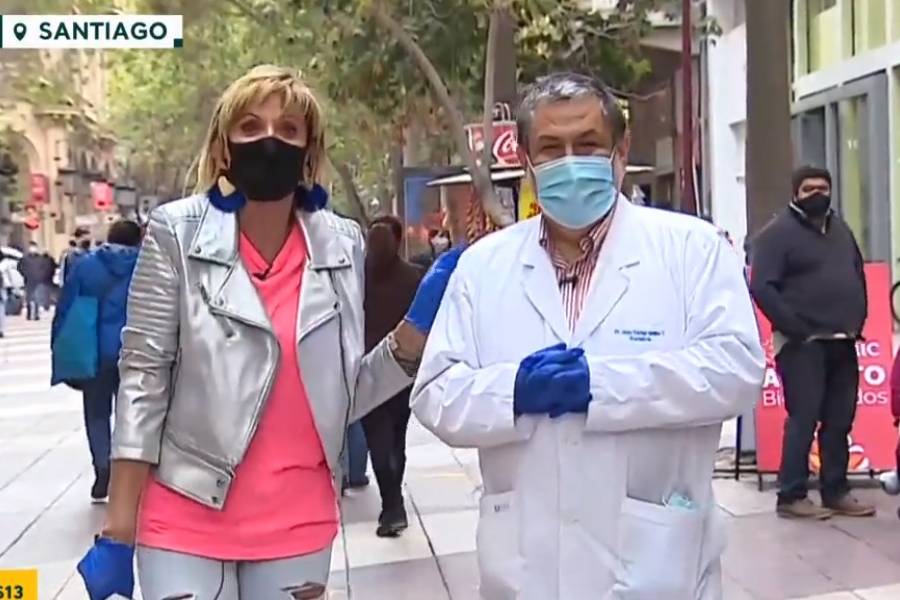 Durante la emisión del programa Bienvenidos de Canal 13, dos panelistas como Raquel Argandoña y el doctor Juan Carlos Molina aparecieron en el centro de Santiago entregando tips para seguir cuidándose del maldito coronavirus.