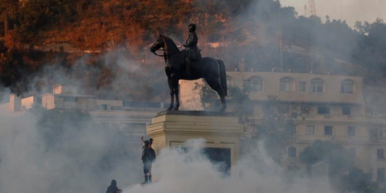 Previamente, Carabineros había informado que “un grupo de individuos interrumpe el tránsito y ocasiona desórdenes en Plaza Baquedano. Recomendamos preferir vías alternativas para transitar”.