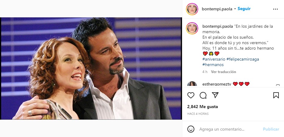 Fue en esa línea, que Bontempi comentó: «En los jardines de la memoria, en el palacio de los sueños. Allí es donde tú y yo nos veremos. Hoy, 11 años sin ti… te adoro hermano».