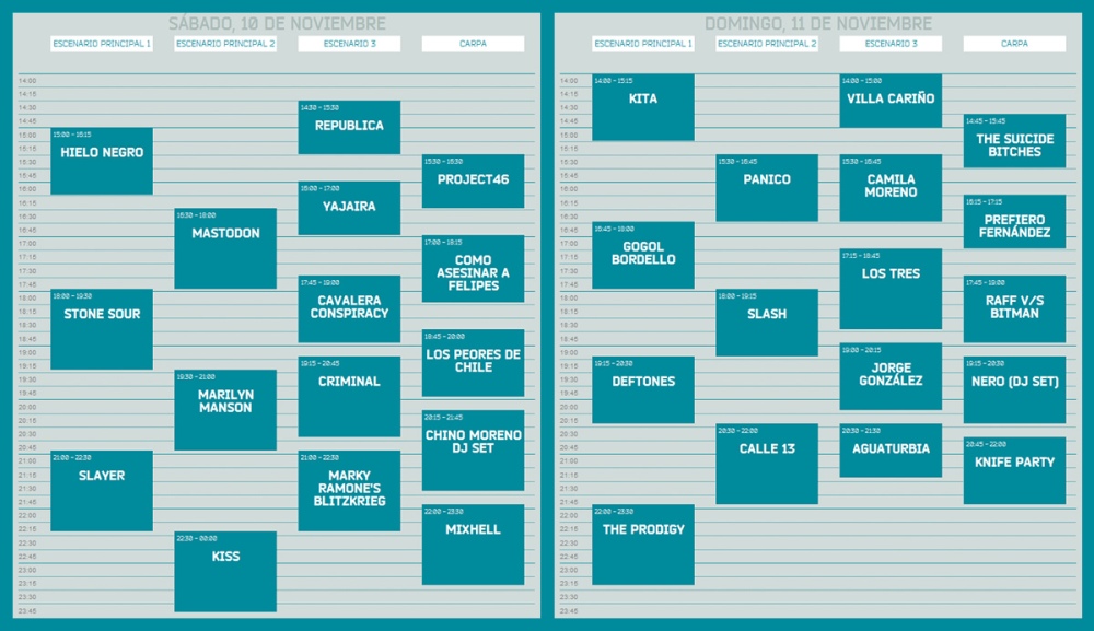 Acá la lista de bandas por día, con sus respectivos horarios…