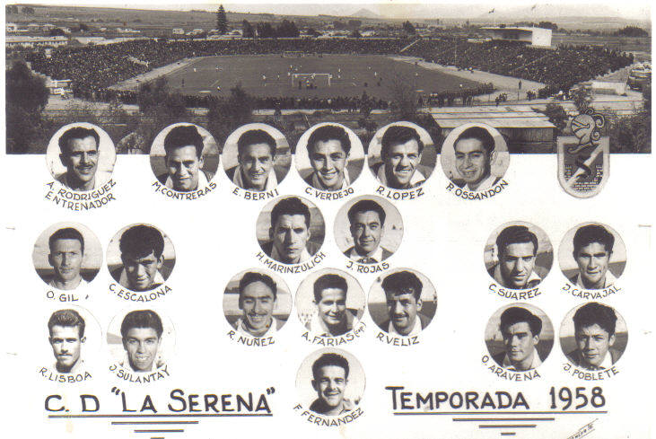 La Serena 1958El debut de La Serena en Primera fue fabuloso. Los papayeros llegaron hasta la última fecha del torneo de 1958 con posibilidades de campeonar; al cabo fueron terceros apenas un punto por detrás de Wanderers. En 1959, sin embargo, todo se derrumbó: colistas absolutos, descendieron a Segunda. En 1960 fueron campeones de la Copa Chile; retornaron a Primera el ‘61 para cumplir grandes campañas (cuartos el ‘62, terceros el ‘63); luego, los granates se habituaron a la medianía.