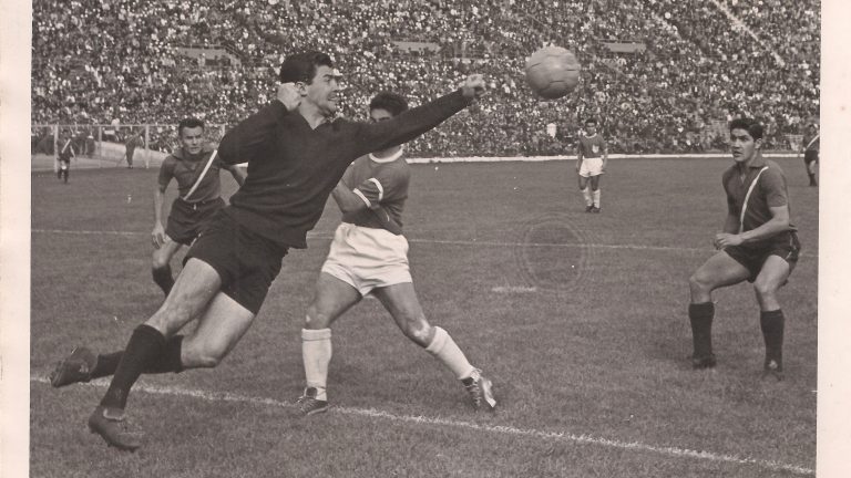 La foto corresponde al triunfo serenense sobre Palestino por 2 a 1 en la segunda fecha del torneo 1964. El partido abrió una reunión doble en cuyo match de fondo jugaron la U y Ferrobádminton: sobra comentar el lleno multitudinario en las tribunas del Nacional. El arquero retratado es el argentino Orfel Cortés, uno de los máximos ídolos de la historia del club y quien prolongaría su carrera en el Norte Chico hasta bien entrados los años ‘70.