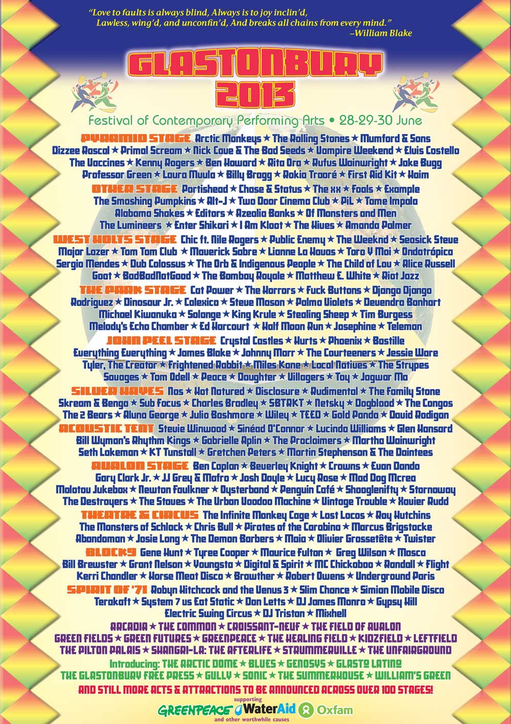 Revisa el cartel completo de Glastonbury 2013 a continuación…