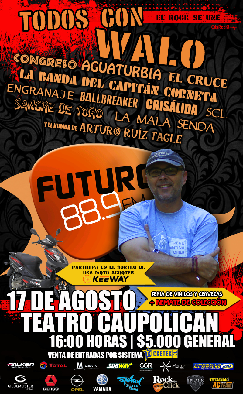 Entonces no te quedes fuera y compra tu entrada para “Todos por Walo”, el esperado evento que realizaremos en el Teatro Caupolicán el sábado 17 de agosto, en beneficio de nuestro compañero Walo Frías.