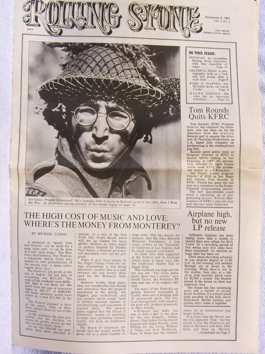 John Lennon fue el primer personaje inmortalizado en su tapa. La excusa fue el próximo estreno «How I Won the War», cinta del director estadounidense Richard Lester, protagonizada por Michael Crawford, Roy Kinnear y el propio John Lennon, estrenada el 1 de enero de 1967.