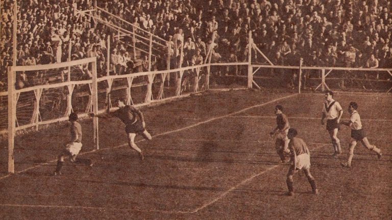 Arriba, por ejemplo, vemos la multitud congregada en el viejo Estadio de Carabineros (el “Fortín Mapocho” de Balmaceda con Cumming) para ver un partido de trámite entre Unión Española y el cuadro de la V negra por el torneo 1944.