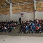 Luego de una prueba de sonido de 10 minutos, el trío se concentra en su camarín mientras la inusual audiencia, en su mayoría muchachos jóvenes, va tomando posición en las galerías de un gimnasio.