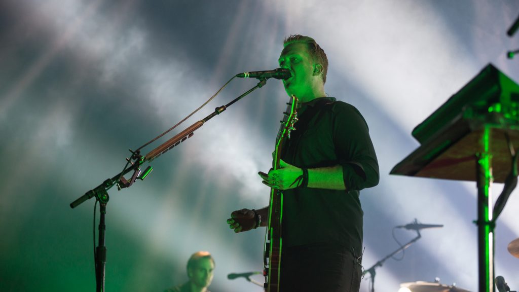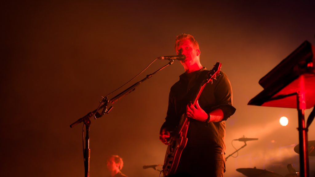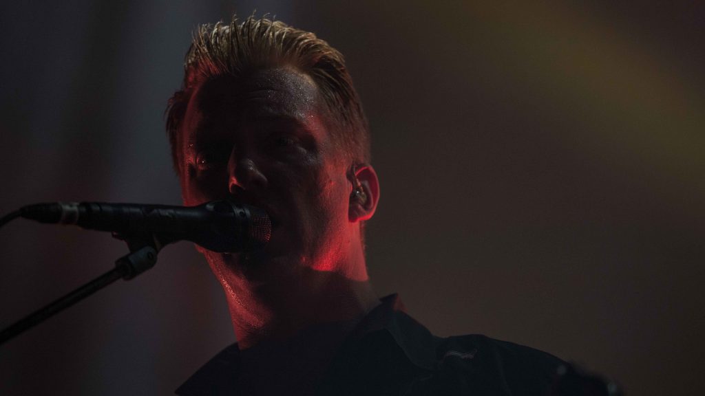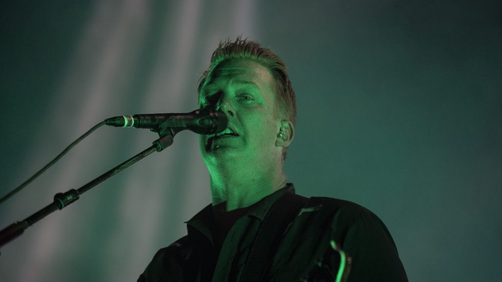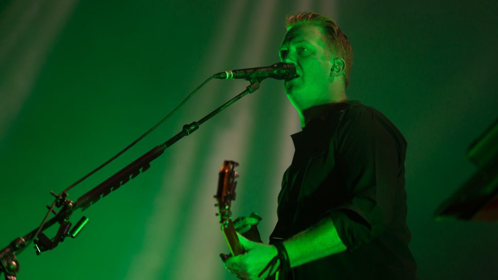 El comienzo marca la tónica de todo el show: temas de toda su trayectoria y los de “…Like Clockwork” conviviendo con naturalidad, esa que tiene una banda con oficio y que parece haber encontrado formación definitiva para tocar precisos, implacables y certeros. Una precisión que tiene un punto alto en “The Fun Machine Took a Shit and Died”, con 7 minutos de cambios de tempo, intensidad y timbres que solo puede hacer una máquina ajustada en su punto. Si no conoces a la banda y te topas con ese despliegue, te conviertes en un devoto.