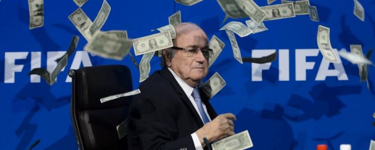 Las declaraciones de Blatter fueron interrumpidas por el comediante británico Lee Nelson, quien sorpresivamente le lanzó uan lluvia d edólares falsos al cuestionado dirigente, pidiéndole que le otorgaran la sede del Mundial 2026 a Corea del Norte.