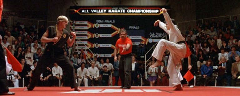 En esta cinta, Daniel LaRusso (Ralph Macchio), es el chico nuevo que llega al pueblo y se convierte en blanco de los chicos malos de la secundaria, liderados por Johnny Lawrence (William Zabka). Para su fortuna, Daniel se encuentra con el Sr. Miyagi (Pat Morita), quien lo entrena para dominar el complicado arte del karate, y así es como logra sobreponerse al bullying. O, al menos, eso creíamos.