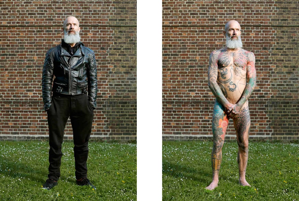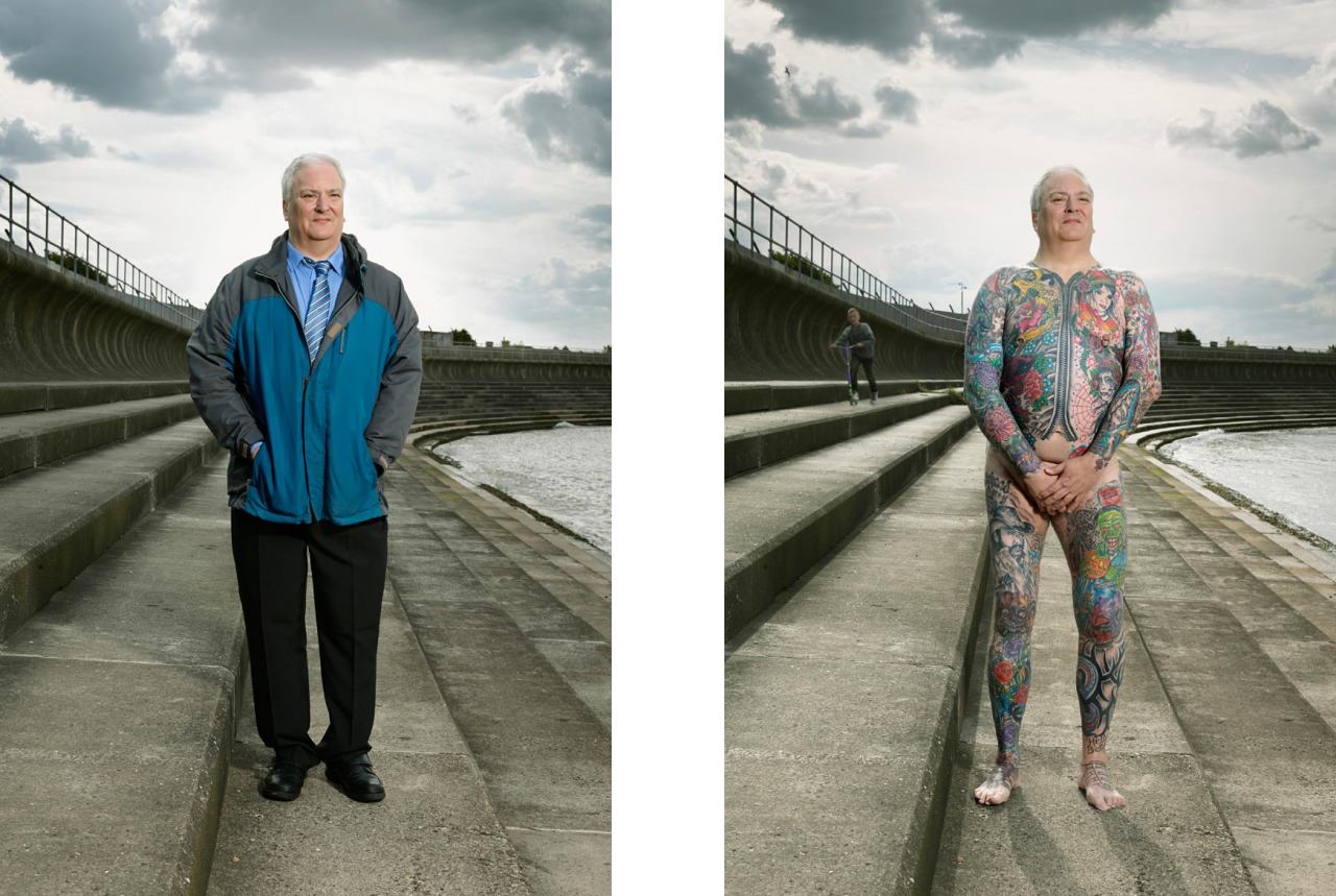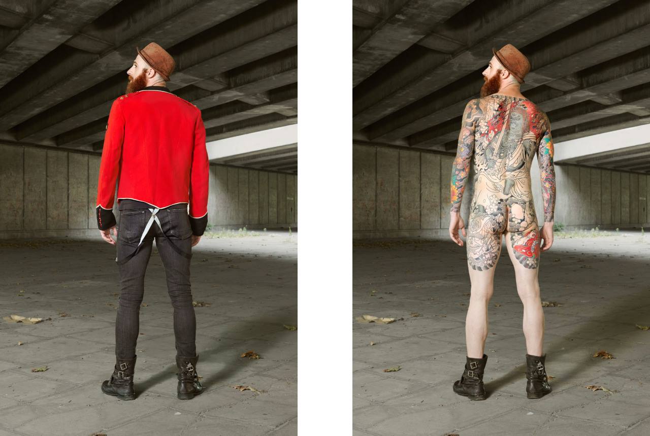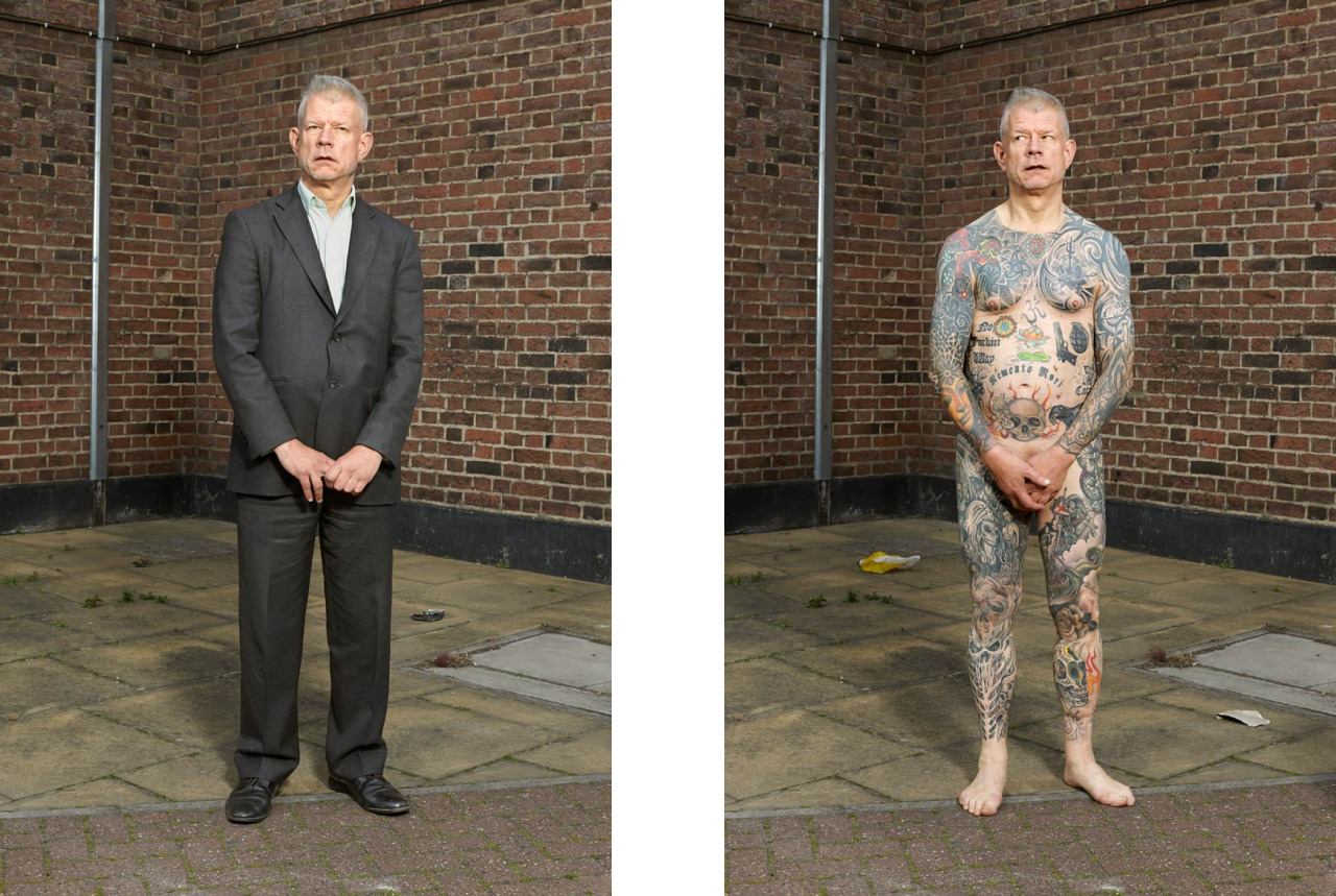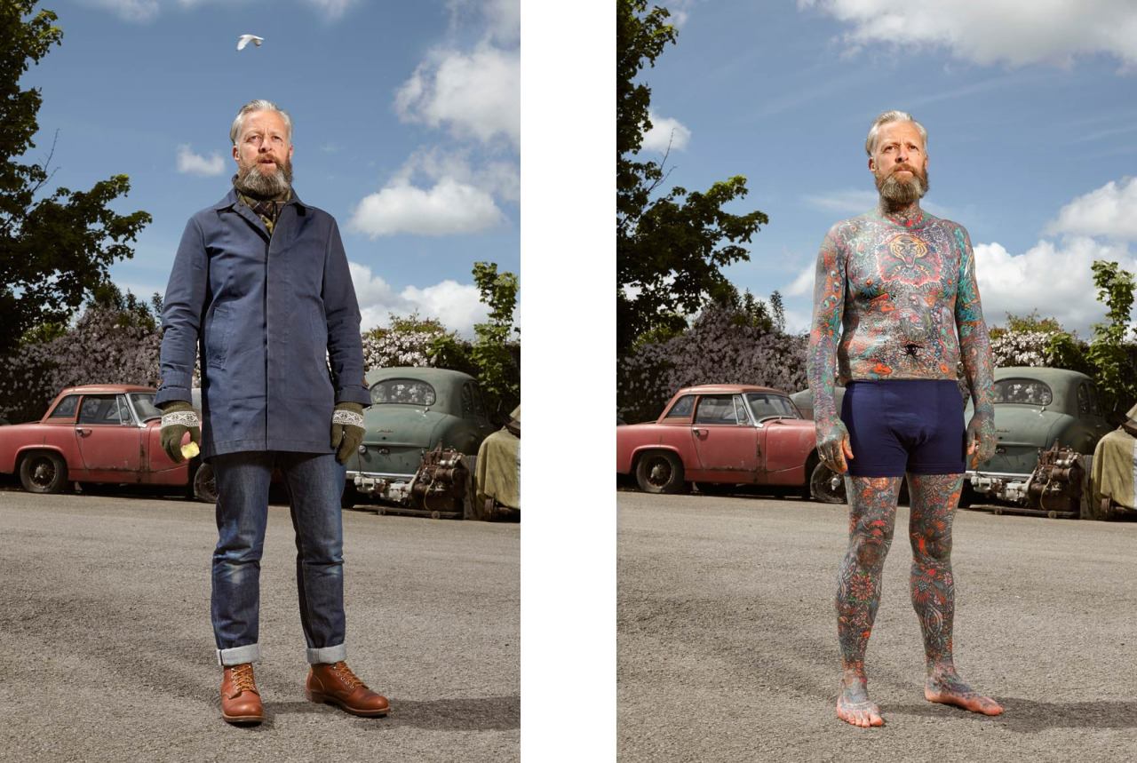 Varias de las personas que posaron para el proyecto tienen su cuerpo casi completamente tatuado, pero pasan desapercibidos con ropa habitual.