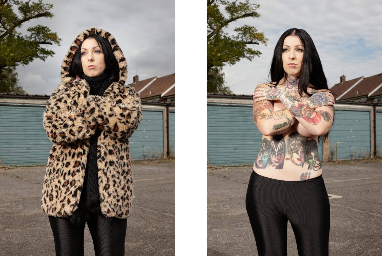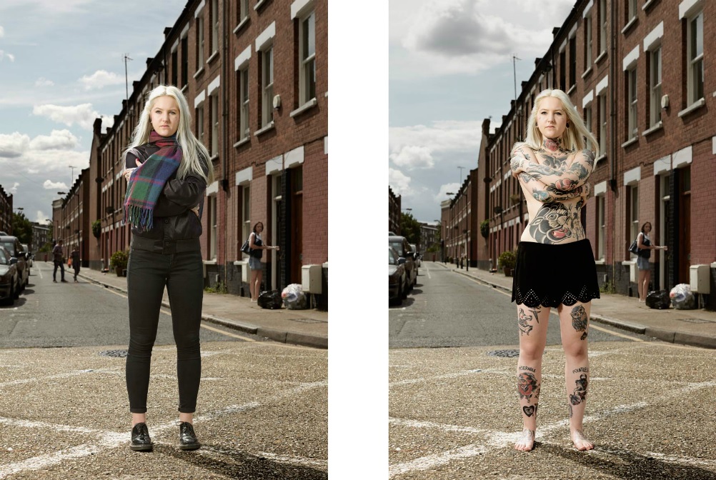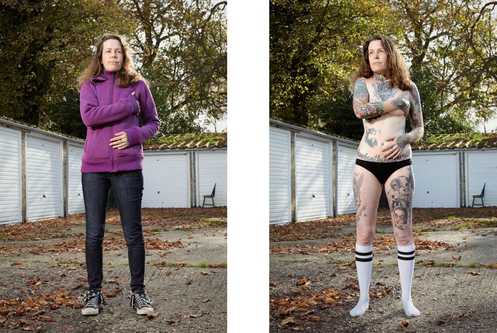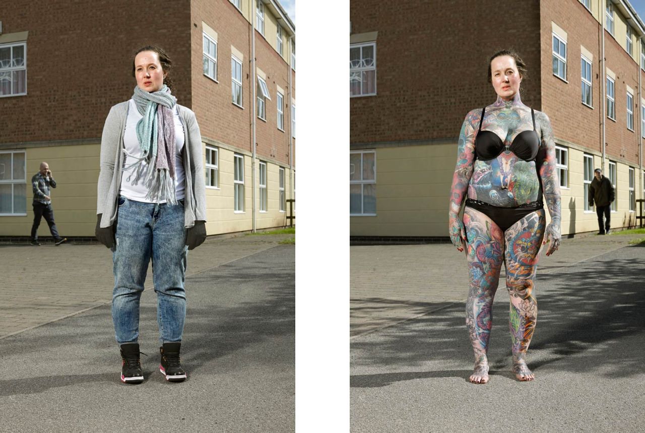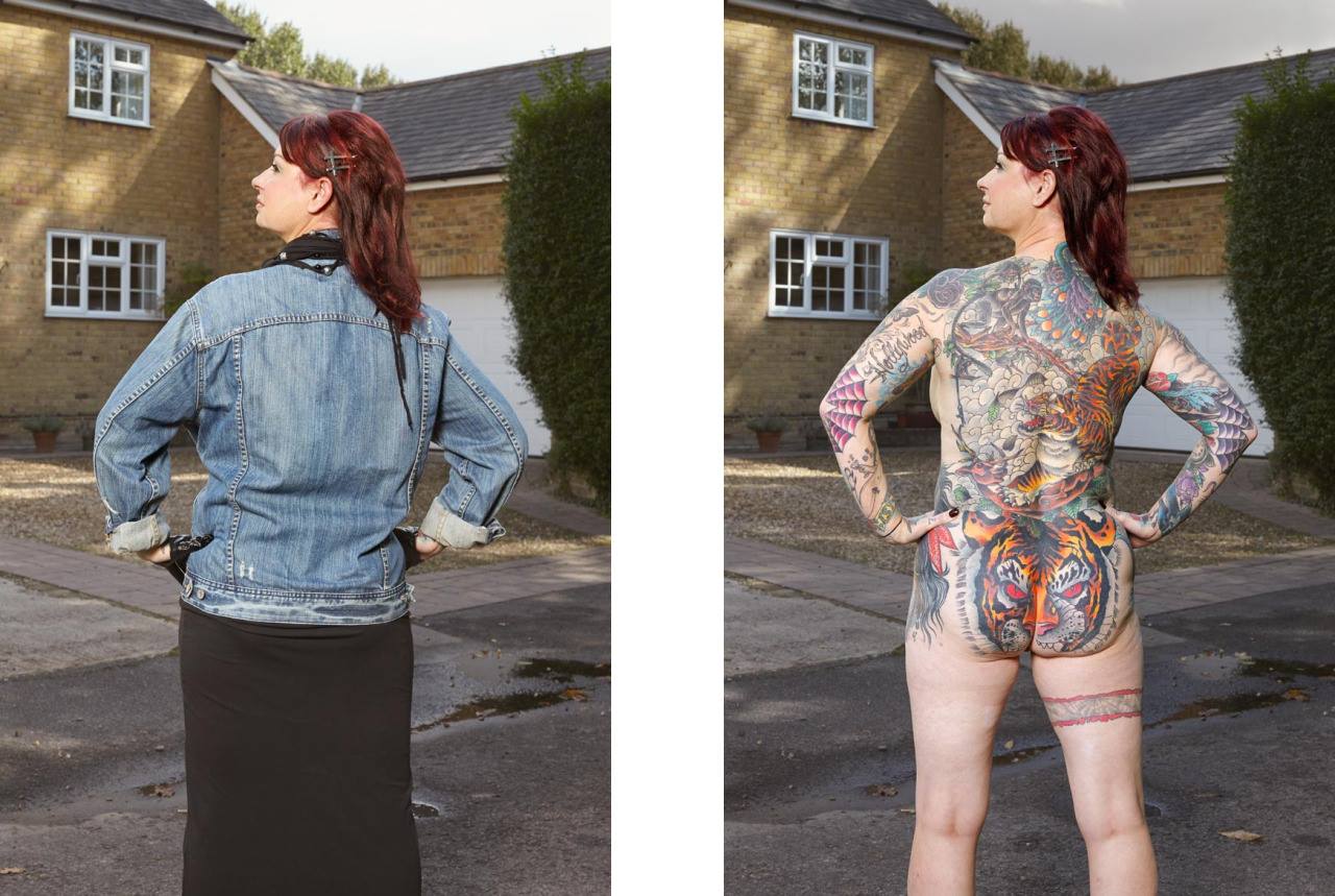 Varias de las personas que posaron para el proyecto tienen su cuerpo casi completamente tatuado, pero pasan desapercibidos con ropa habitual.