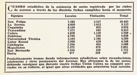 La pelea entonces quedaba reducida a serenenses, andinos y chillanejos. Todos lucían estupendos borderós, miles de socios en su padrón y trasladaban a millares de hinchas por Chile para sus partidos de visita. Ante la demora de la ACF en tomar la decisión, la revista Estadio propuso que se respetara el orden en la tabla, privilegiando a La Serena y Trasandino.