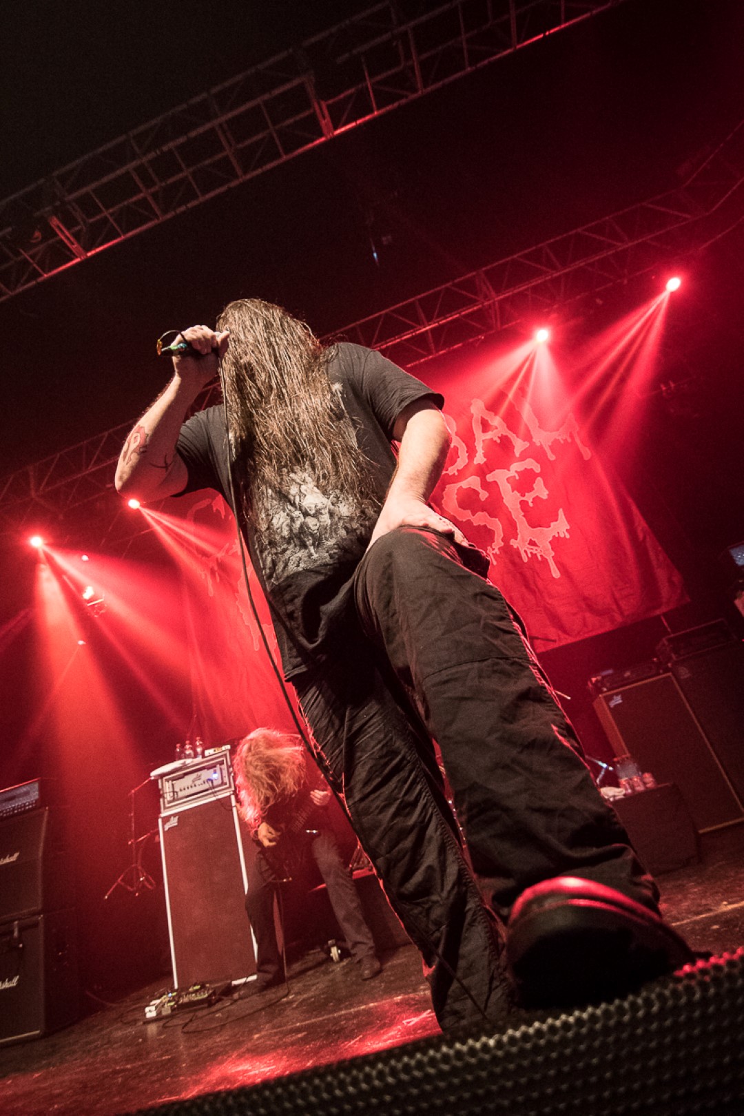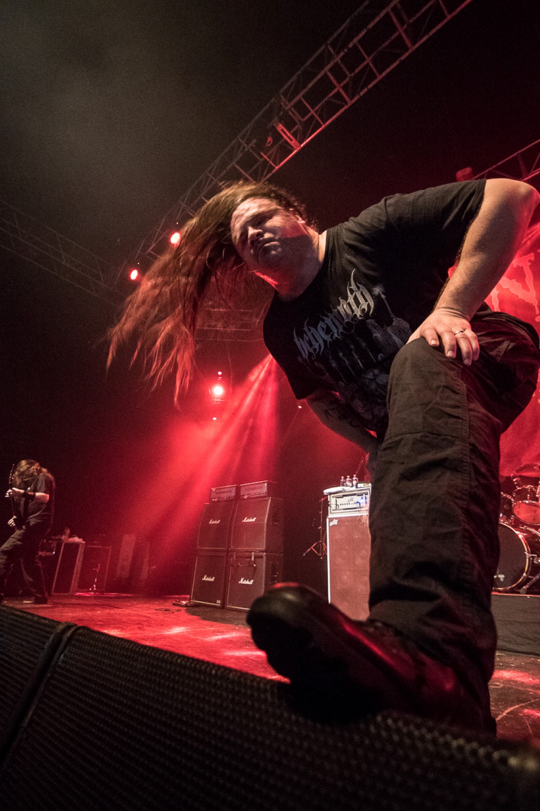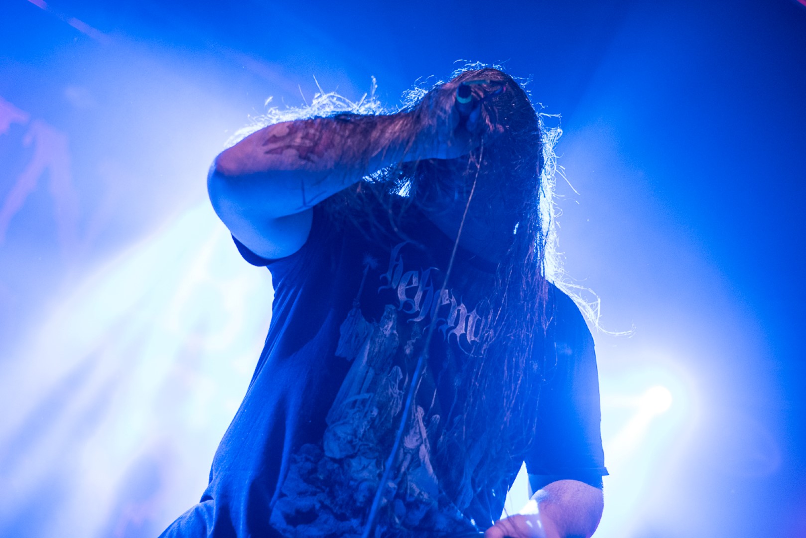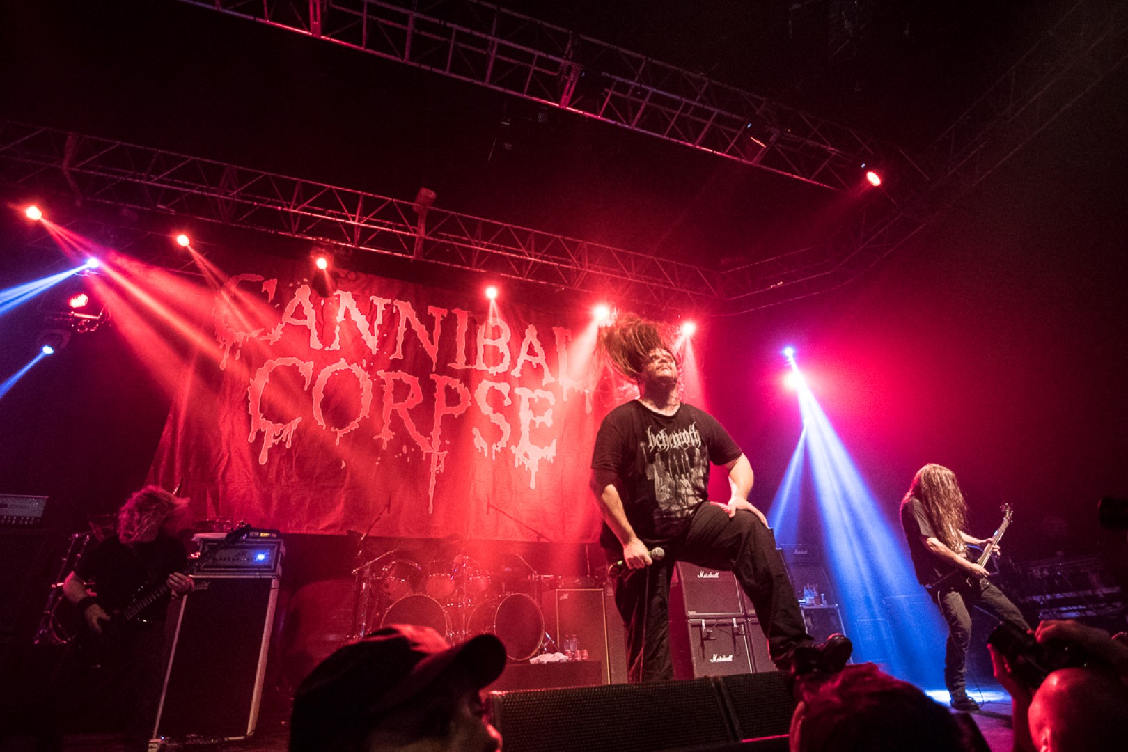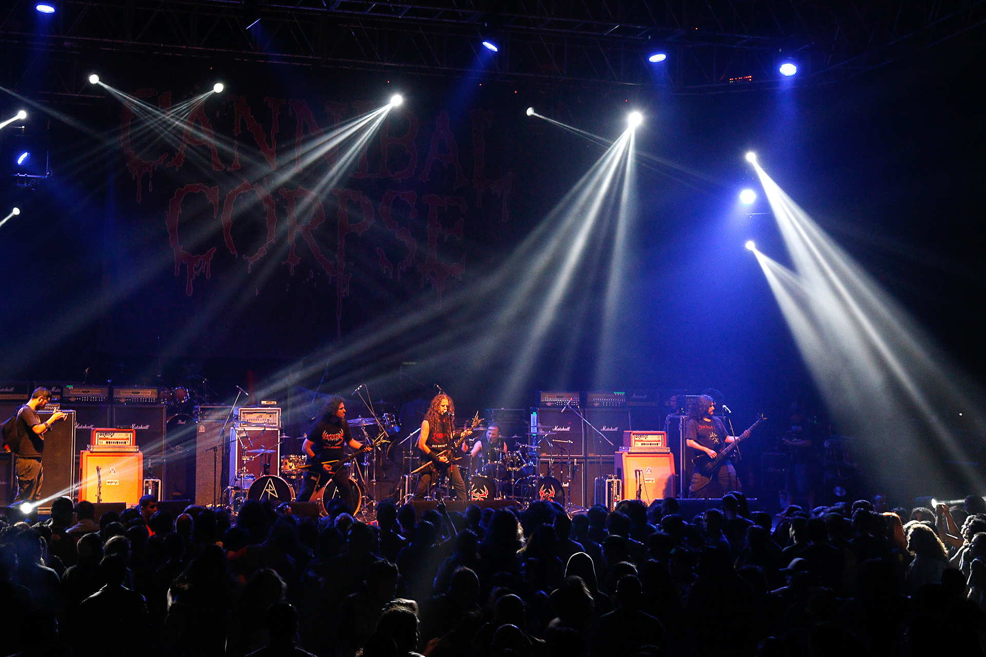 Siendo bien directo: Cannibal Corpse se comió la noche. Es cierto, sabemos cómo es un show de ellos, han venido varias veces y, salvo algunas variaciones según el disco que vengan mostrando, siempre es básicamente lo mismo. Aún así, no deja de impresionar la aplanadora que son en vivo. Esta vez contaron con un sonido arrollador desde el inicio, en que apelaron a su material más reciente, y terminaron de echarse al respetable al bolsillo cuando empezaron con los clásicos como ‘Stripped, raped and strangled’, ‘Disposal of the body’ y ‘Sentenced to burn’, con los que ya nadie pudo quedarse quieto. Aplastante performance del vocalista George ‘Corpsegrinder’ Fisher y el resto de la banda, destacando el gesto del guitarrista Pat O’Brien que salió a tocar con polera de Cerberus. Al final, quemaron todos los cartuchos con infaltables como ’I cum blood’, ‘A skull of maggots’, ‘Hammer smashed face’ y ‘Devoured by vermin’, que cerró la carnicería.
