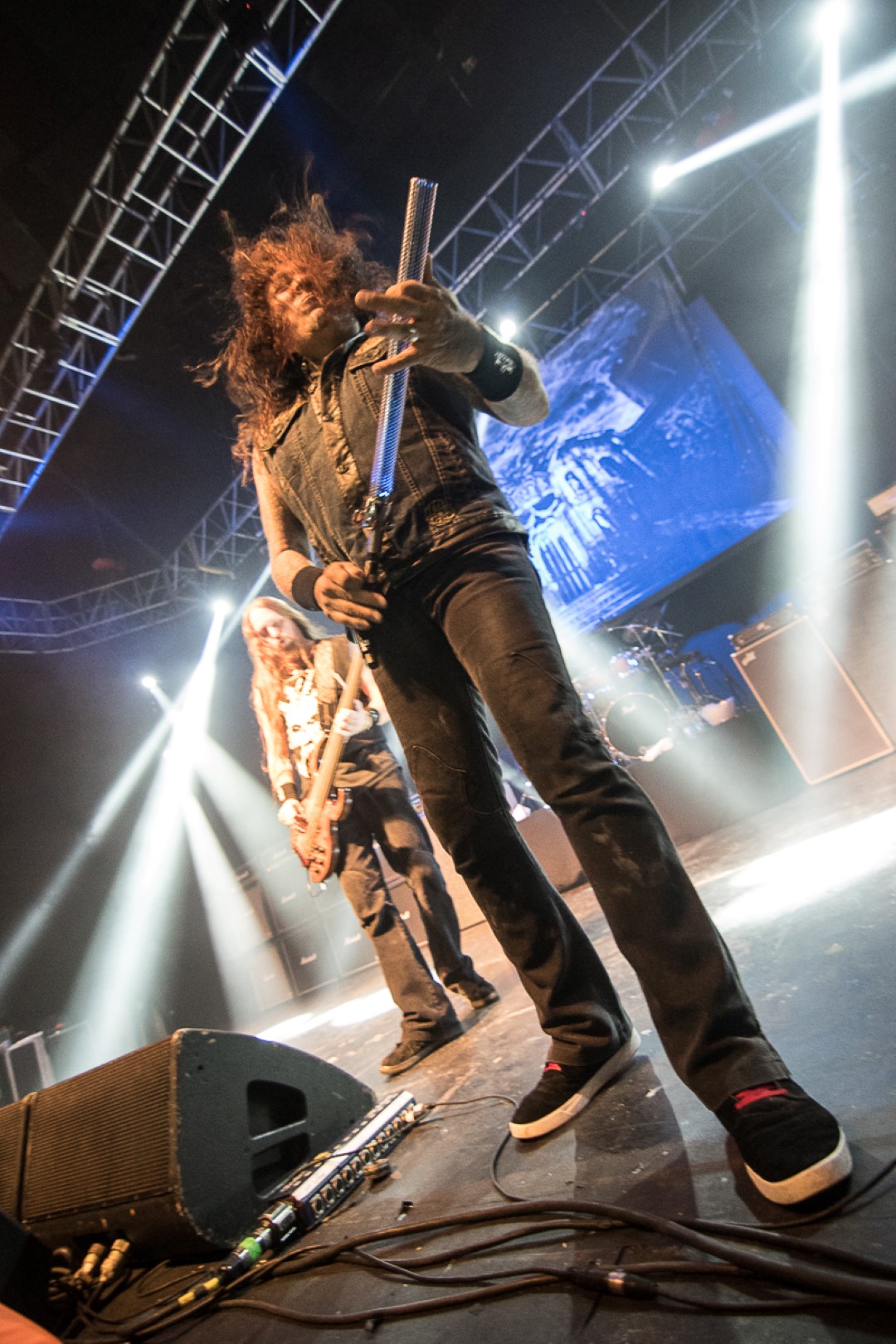 A la hora de Dorso, ya el Caupolicán se había ido llenando y se pudo comprobar, una vez más, por qué Dorso suele estar en las grandes citas: tienen clásicos para tirar a la chuña, despliegan un entretenido show, con buen sonido, con buen desempeño de sus músicos y con ese carisma peculiar que les da una importante identificación con el público. ¿Qué más se puede pedir? Si salen más grupos con esos elementos, bienvenidos sean en cualquier festival o concierto. El Caupolicán cantó, cabeceó y mosheó con sus canciones de discos tan emblemáticos como ‘El espanto surge de la tumba’ o ‘Disco blood’, dejando los ánimos bien arriba para los platos fuertes, Cannibal Corpse y Testament.