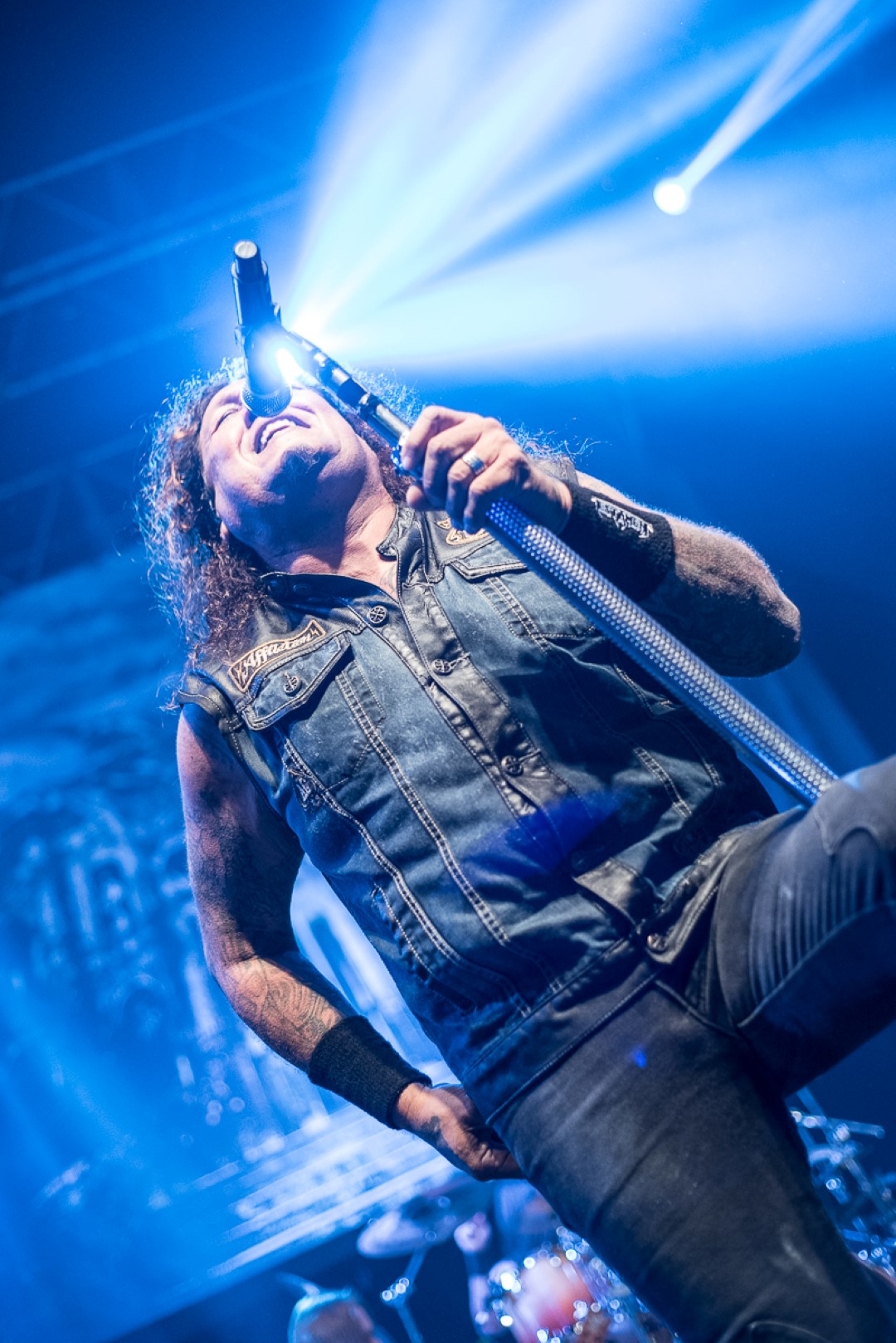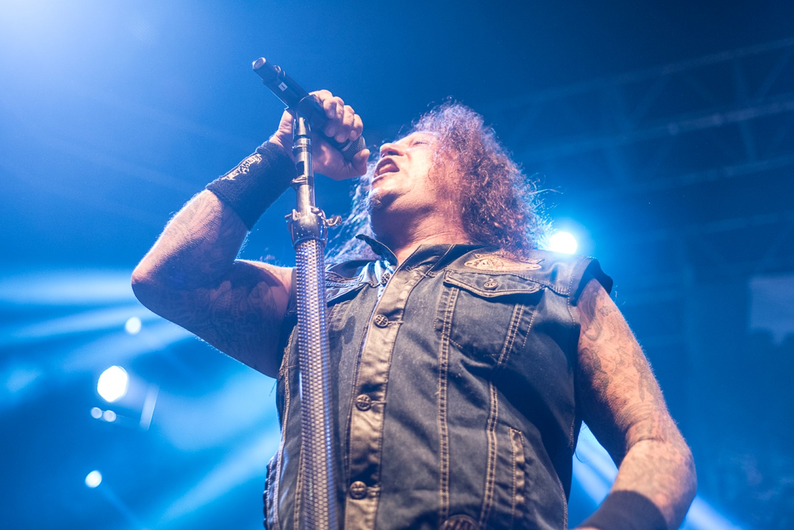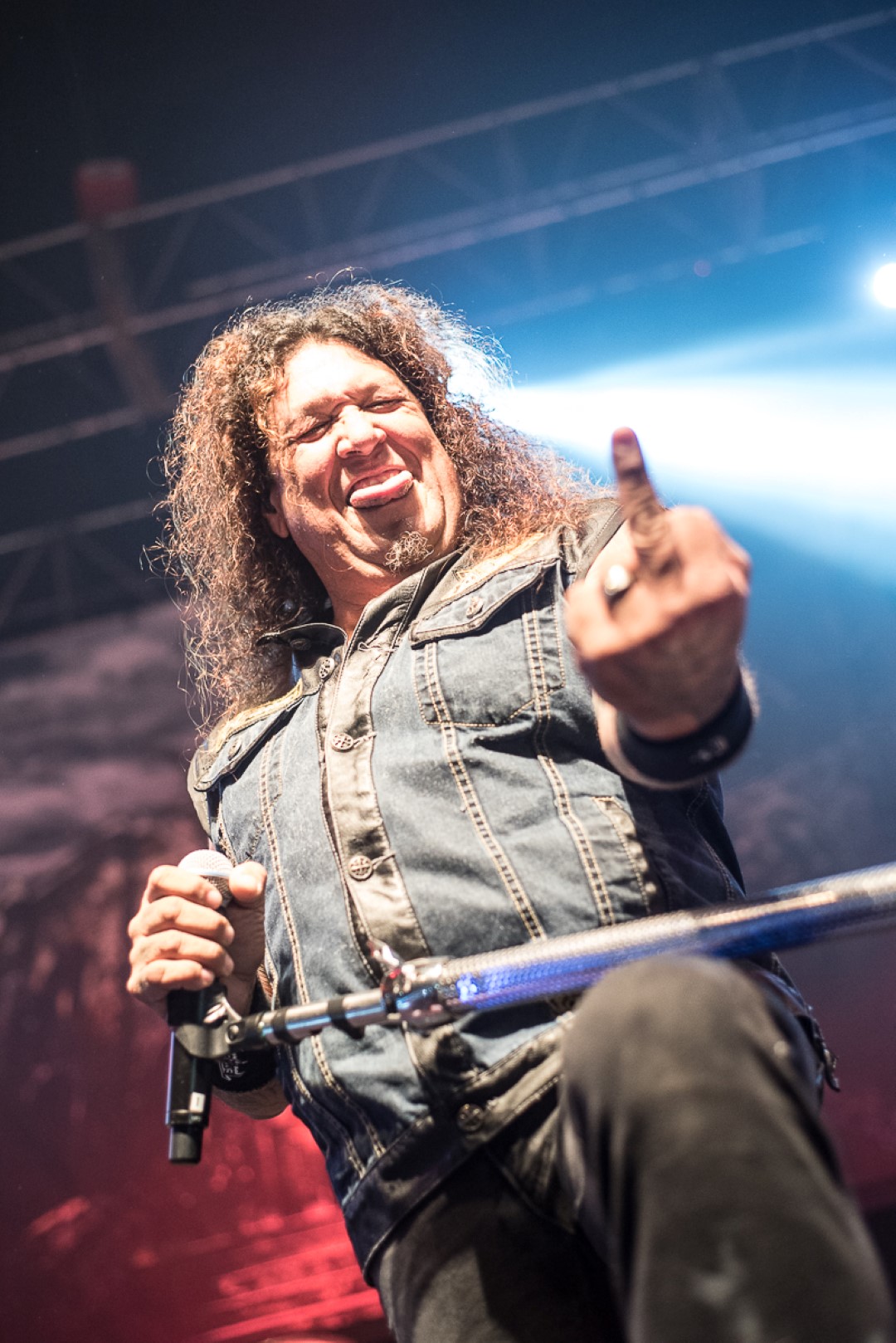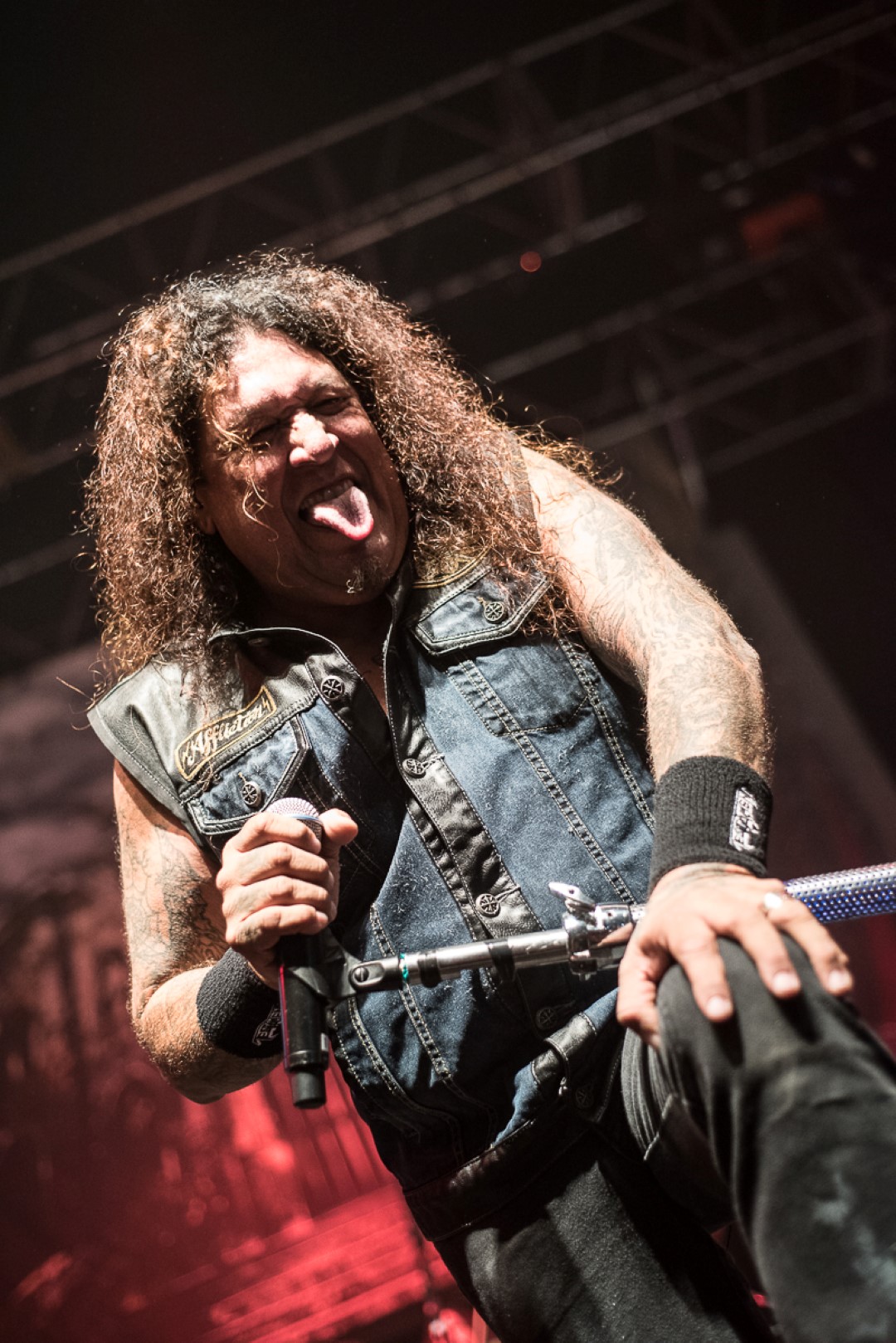 Con eso ya estaba para no pedir más guerra, pero todavía faltaba Testament. Pasadas las 23 horas, después de cuatro bandas intensas y en día hábil, hubo que sacar fuerzas de flaqueza para el mosh interminable de los estadounidenses. La excelencia estaba asegurada con una formación que luce a Gene Hoglan y Steve DiGiorgio en la base rítmica, más las guitarras de Skolnick y Peterson y la voz de Chuck Billy. Lamentablemente, partieron a porrazos con el sonido y el golpe certero que debió ser ‘Over the wall’ se vio un poco atenuado. Los gestos de Chuck Billy y Steve DiGiorgio haciéndole señas a la mesa de sonido dieron cuenta de esto. Pero la cosa se fue componiendo con el correr de las canciones, que repasaron diversas épocas del grupo: clásicos ochenteros (‘Into the pit’, ‘Disciples of the watch’), material de los 90 (‘Dog faced gods’, ‘D.N.R.’) y de los discos más recientes (‘Rise up’, ‘More than meets the eye’). La entrega de los titanes encontró como respuesta la entonació de varios coros y unos mosh de temer en los momentos cúlmines. Realmente es para aplaudir el aguante del público, ya que a esas alturas una persona “normal” no se levanta ni a palos.