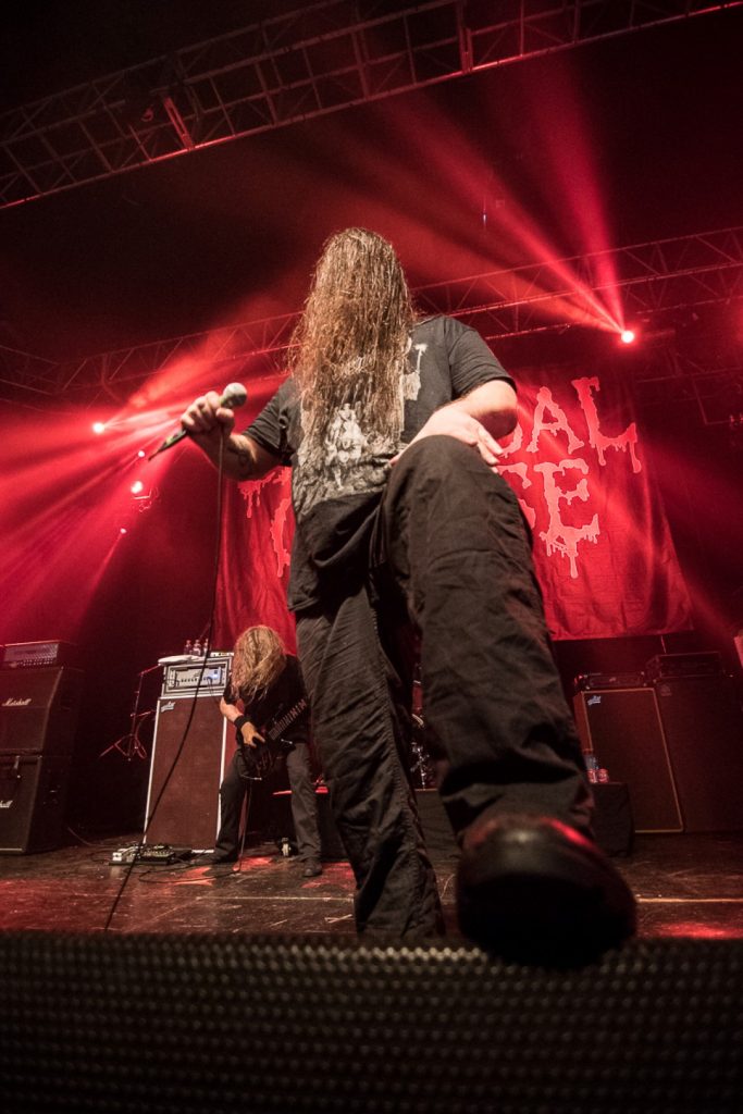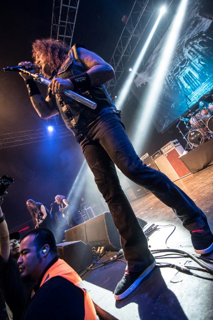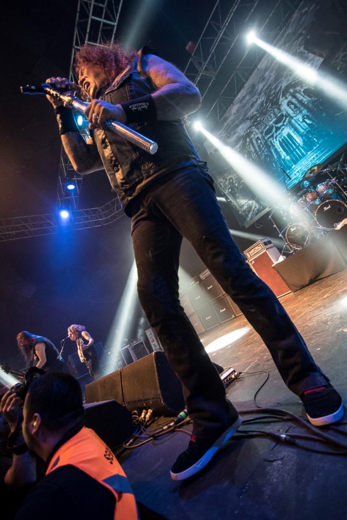 A la hora de Dorso, ya el Caupolicán se había ido llenando y se pudo comprobar, una vez más, por qué Dorso suele estar en las grandes citas: tienen clásicos para tirar a la chuña, despliegan un entretenido show, con buen sonido, con buen desempeño de sus músicos y con ese carisma peculiar que les da una importante identificación con el público. ¿Qué más se puede pedir? Si salen más grupos con esos elementos, bienvenidos sean en cualquier festival o concierto. El Caupolicán cantó, cabeceó y mosheó con sus canciones de discos tan emblemáticos como ‘El espanto surge de la tumba’ o ‘Disco blood’, dejando los ánimos bien arriba para los platos fuertes, Cannibal Corpse y Testament.