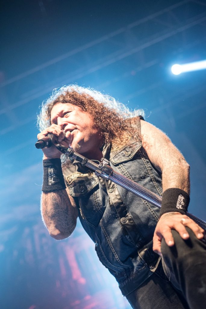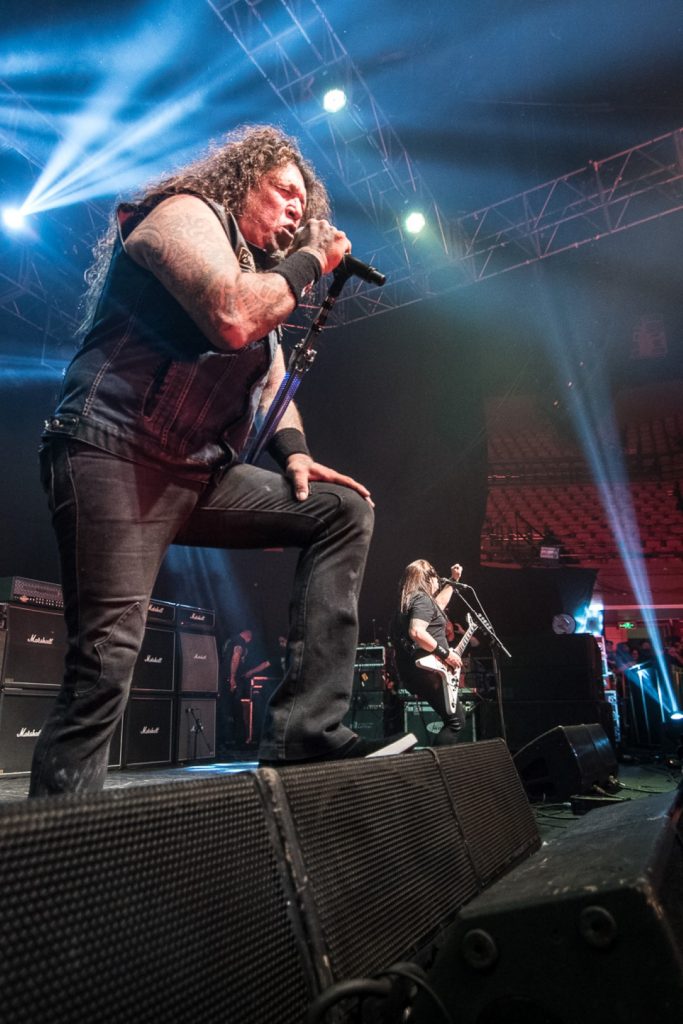 Con eso ya estaba para no pedir más guerra, pero todavía faltaba Testament. Pasadas las 23 horas, después de cuatro bandas intensas y en día hábil, hubo que sacar fuerzas de flaqueza para el mosh interminable de los estadounidenses. La excelencia estaba asegurada con una formación que luce a Gene Hoglan y Steve DiGiorgio en la base rítmica, más las guitarras de Skolnick y Peterson y la voz de Chuck Billy. Lamentablemente, partieron a porrazos con el sonido y el golpe certero que debió ser ‘Over the wall’ se vio un poco atenuado. Los gestos de Chuck Billy y Steve DiGiorgio haciéndole señas a la mesa de sonido dieron cuenta de esto. Pero la cosa se fue componiendo con el correr de las canciones, que repasaron diversas épocas del grupo: clásicos ochenteros (‘Into the pit’, ‘Disciples of the watch’), material de los 90 (‘Dog faced gods’, ‘D.N.R.’) y de los discos más recientes (‘Rise up’, ‘More than meets the eye’). La entrega de los titanes encontró como respuesta la entonació de varios coros y unos mosh de temer en los momentos cúlmines. Realmente es para aplaudir el aguante del público, ya que a esas alturas una persona “normal” no se levanta ni a palos.