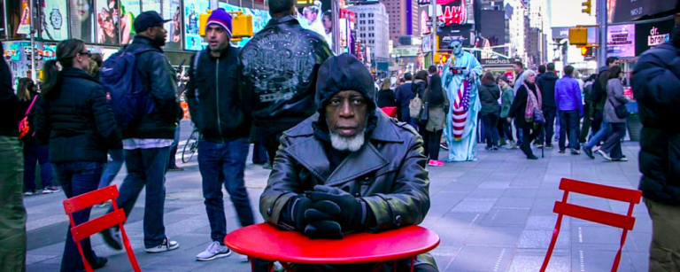 Mientras camina por las calles de Nueva York, su asombro es evidente:»Nunca he visto nada así antes. ¿Videos en las ventanas? No he visto nunca algo así. Sólo había visto a gente al otro lado».