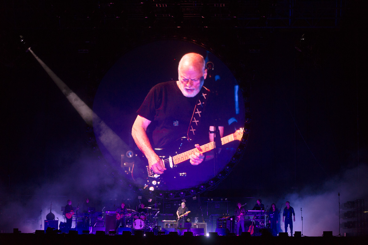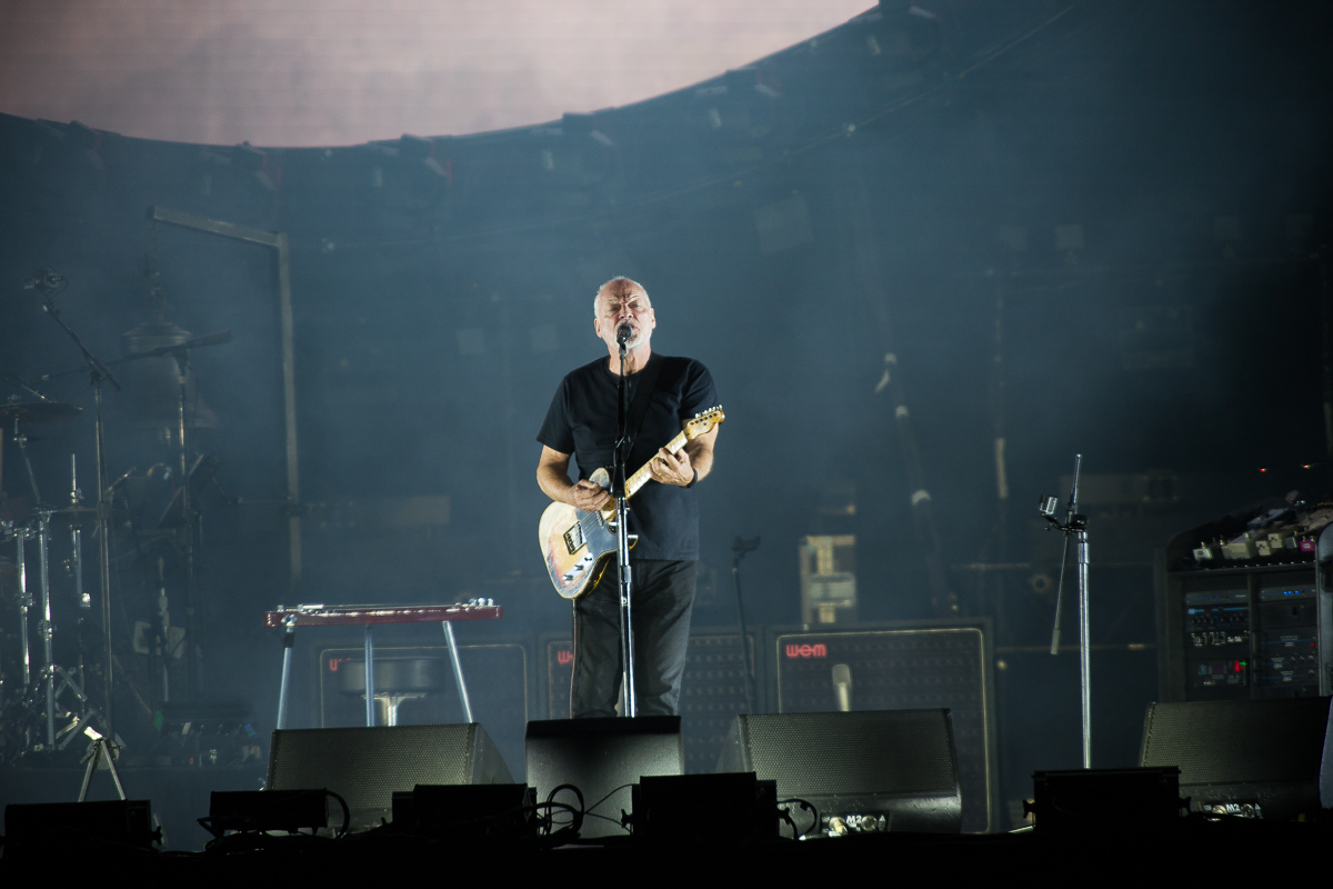 A las 21:20, cuando ya no quedaba nada de sol en el cielo, “5AM” y “Rattle That Lock” dieron inicio a un show que desde el principio aparentaba ser muy sobrio. Solo teníamos a la legendaria pantalla circular, esta vez un LED gigante, y un sonido envolvente que te atrapaba desde cualquier rincón del que Gilmour llamó “el Wembley de Chile”, que se vino abajo con el primer recuerdo de Pink Floyd de la noche, “Wish You Were Here”. Sin gráficas especiales, solo la acción y emoción del escenario amplificada para todos los que estábamos ahí, con una banda en donde un grande como el ex Roxy Music Phil Manzanera es el segundo a bordo. Las luces de los celulares que colmaron la galería completaron un cuadro perfecto. Y eso que aún quedaba show.