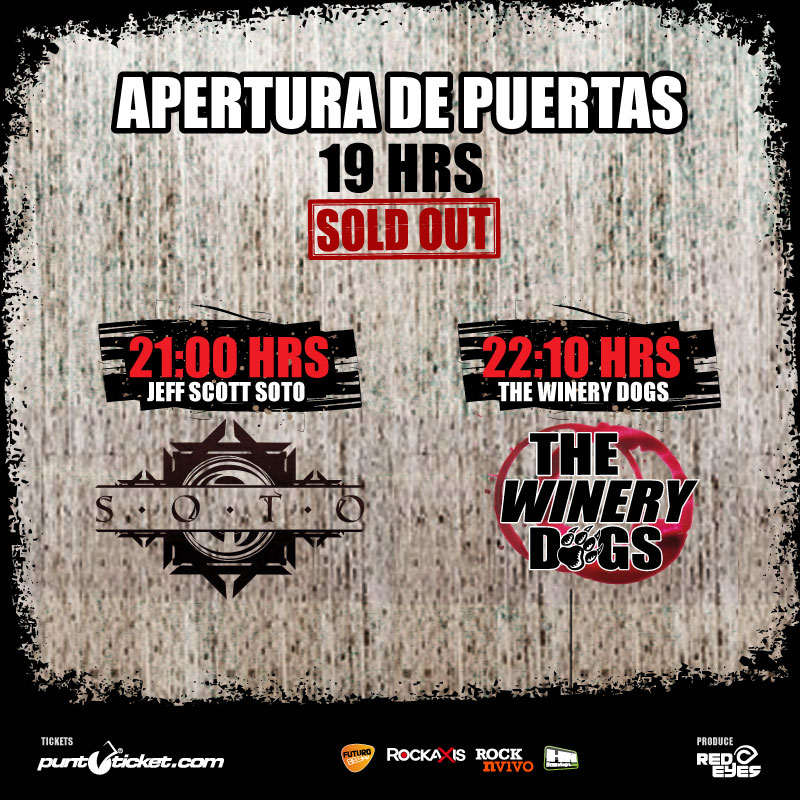 A las 19 hrs se abrirán las puertas, a las 21 hrs tocará Jeff Scott Soto y a las 22:10 se realizará el show de The Winery Dogs.