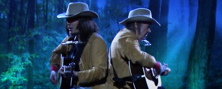 Para esta ocasión, el músico canadiense interpretó junto al conductor, quien estaba caracterizado como el cantautor, «Two Neil Youngs on a Tree Stump».