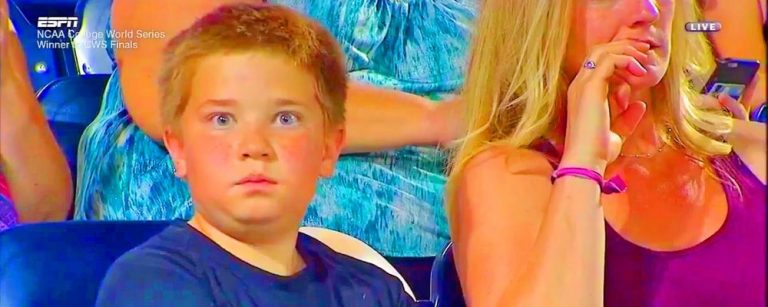 Un niño se robó el show de un partido de béisbol en Estados Unidos, en un encuentro válido por el College World Serie.