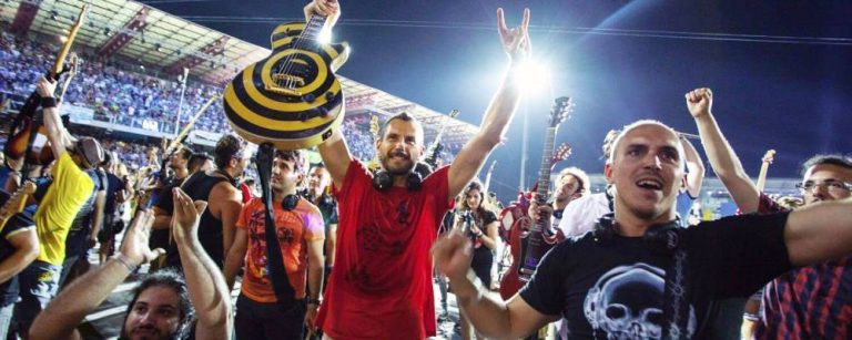 Noticias Más de mil fans se juntan en Cesena para versionar a The Beatles, AC/DC y Nirvana Por Equipo Futuro | 27 Jul, 2016. 16:56 hrs Revisa videos. ¿Recuerdan a esos fans de Cesena que convencieron a Foo Fighters de tocar en su pueblo haciendo un multitudinario cover de «Learn To Fly»? Ahora, estos mismos seguidores volvieron a instaurar un hito musical en su ciudad. Con el nombre de Rockin’ 1000, más de mil músicos se reunieron en Cesena para tocar todos juntos un set variado y clásico. En la cita tocaron «It’s a Long Way to the Top (If You Wanna Rock ‘n’ Roll)'» de AC/DC, «Come Together» de The Beatles, «Smells Like Teen Spirit» de Nirvana y «Born to Be Wild» de Stepenwolf, entre otros, ante un público que llegó a ver el experimento al estadio. Revisa videos a continuación… Fish prepara el que será su último disco de estudio Chad Smith quiso participar de "13", último disco de Black Sabbath Sigue a FUTURO.cl en Google Discover Recibe nuestros contenidos directamente en tu feed. Seguir en Google Contenido patrocinado