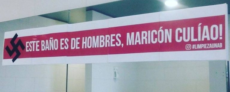 Finalmente, estudiantes de publicidad de la UNAB se adjudicaron el despliegue de un cartel con mensajes neonazis, de corte homofóbico, en los baños de la casa de estudios, y que causó la indignación del Movimiento de Integración y Liberación Homosexual (Movilh).