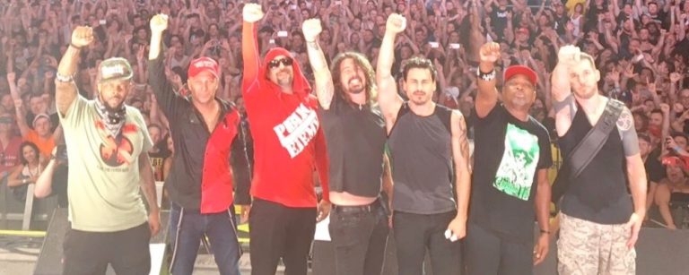 La súper banda, que tiene miembros de Rage Against the Machine, Public Enemy y Cypress Hill, se presentó la noche del pasado miércoles 24 de agosto en Toronto, en un fecha más de su «Make America Rage Again Tour». El líder de Foo Fighters dijo presente cuando el resto de los músicos interpretaban ‘Kick Out the Jams’, clásico inmortal de MC5.