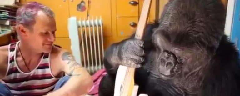 Además, en el sitio web de la fundación, expresaron la felicidad y gratitud por ese momento compartido: “Koko estaba tan entusiasmada con las melodías y la zapada que después agarró el bajo de Flea para tocar ella”.