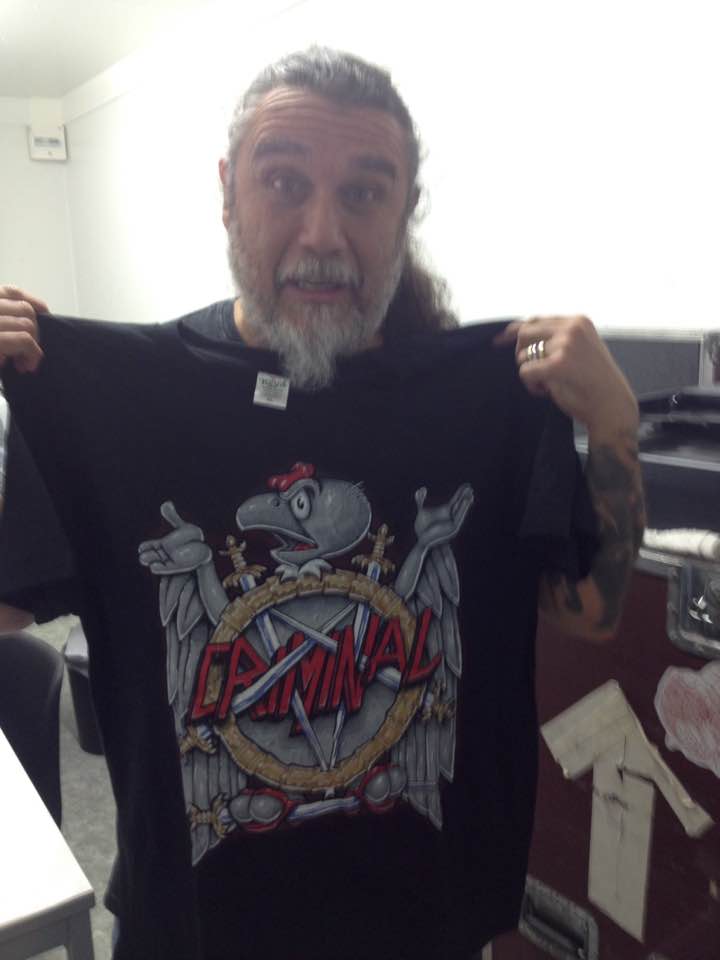 Noticias Tom Araya recibe un regalo muy especial de Anton Reisenegger Por Equipo Futuro | 20 Ago, 2016. 15:23 hrs Esta semana, nuestro Anton Reisenegger, voz de Disco Duro, se encontró con el siempre dispuesto y siempre chileno Tom Araya, líder de Slayer, banda que por estos días anda por Europa mostrando su más reicente disco, «Repentless». Como puede verse en sus redes sociales, Reisenegger le hizo un simbólico regalo a Araya: una polera, diseñada por Francisco Muñoz, baterista de Dorso, que combina a Condorito, Slayer y Criminal en combo de metal extremo con sentimiento chileno. anton reisenegger Slayer Tom Araya Así fue la transformación de Millie Bobby Brown en Eleven de "Stranger Things" Oasis - Be Here Now Sigue a FUTURO.cl en Google Discover Recibe nuestros contenidos directamente en tu feed. Seguir en Google Contenido patrocinado