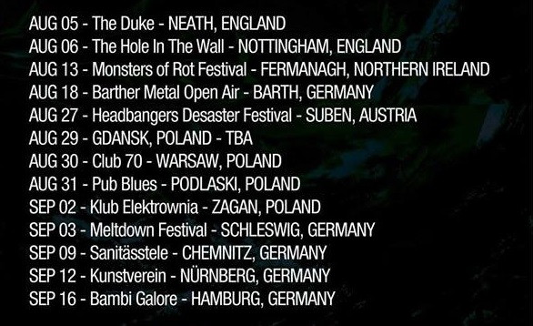 Porque los polacos son súper buenos para tomar jajaja, también son un tanto agresivos, pero todo salió bien cuando tocamos allá. Eso sí, fue difícil agendar las fechas en Polonia. No era cosa de llegar, mandar un mail y listo: show confirmado. Tuvimos que trabajar harto y gracias a las gestiones de la banda black metal argentina Mortuorial Eclipse pudimos gestionar un mini tour por ese país.