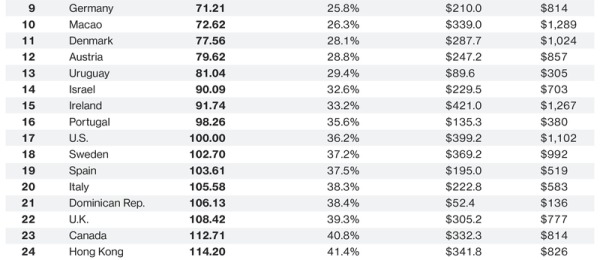 Estudio realizado por Bloomberg consideró a 103 países del mundo.