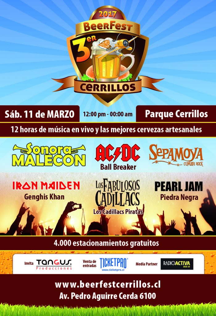 El sábado 11 de marzo, desde el mediodía, disfrutaremos de 12 horas de música, entretención y las mejores cervezas artesanales del país, con tributos a Iron Maiden (Genghis Khan), Pearl Jam (Piedra Negra), AC/DC (Ballbreaker), y muchas sorpresa más en una jornada imperdible.