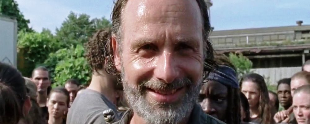 Rick Grimes casi no sonríe. Después de perder a su esposa, ver morir a decenas de compañeros y ser torturado psicológicamente en siete temporadas, apenas ha tenido momentos de felicidad. Y aún así, sonrió al final del más reciente episodio de «The Walking Dead» de AMC, cuando un nuevo grupo lo acorrala.
