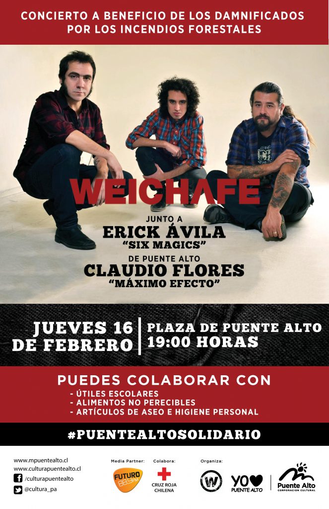 La actividad es organizada por la Municipalidad de Puente Alto, a través de su Corporación Cultural, y la encabeza Weichafe, quienes comaprtirán cartel junto a Erik Ávila, Six Magics y el exponente del Hip- Hop puentealtino Claudio Flores, presentando a su nuevo grupo llamado Máximo Efecto.