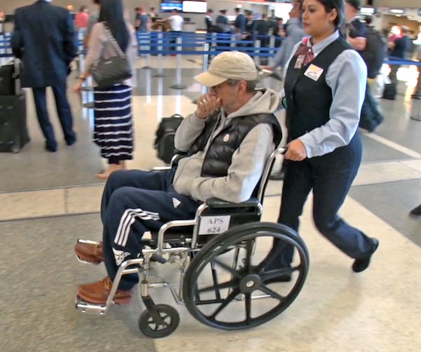 Fue Daily Mail el diario que publicó una serie de imágenes y un video donde el guitarrista aparece siendo transportado en silla de ruedas por personal del aeropuerto, además de estar acompañado por sus 3 hijas.