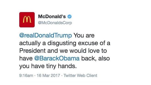Esta mañana, la cuenta oficial de Twitter de McDonald’s publicó un mensaje en el que atacaba al Presidente de Estados Unidos, Donald Trump.