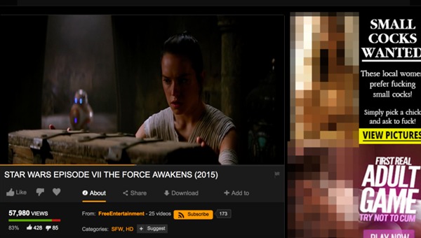 Cintas como «The Force Awakens», «Rogue One» y «Zootopia» son algunas de las disponibles en el sitio de pornografía.