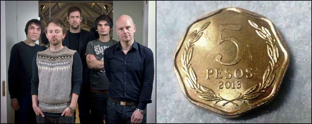La relación, antojadiza por decir lo menos, se basa en el lanzamiento de la versión más pequeña de esta moneda, ya que habían otras versiones girando previamente; contrastándolo con la publicación inglesa de la canción, como adelanto del disco «Pablo Honey», el primero de la banda de Thom Yorke.