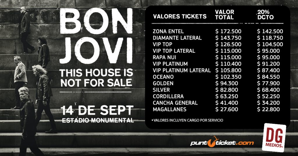 La banda comandada por Jon Bon Jovi se presentará por quinta vez en nuestro país el jueves 14 de septiembre en el Estadio Monumental, a cuatro años de su último show en el mismo recinto. En esta oportunidad, repasarán sus mayores hits y material de su último disco de estudio, «This House Is Not For Sale», editado en noviembre de 2016.