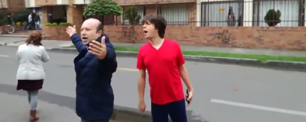En viernes santo, un grupo religioso rezaba en un parque del barrio El Salitre, Bogotá. Todo cambió cuando Rodrigo Carmona, protagonista del registro, se acercó desde su departamento que se ubica en las cercanías del espacio urbano para encararlos con todo su enojo.