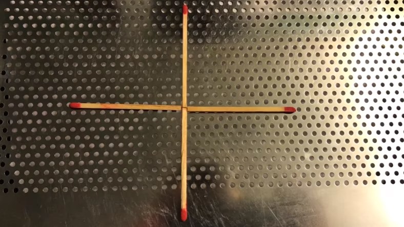Con este juego de ingenio pondrás a trabajar todas tus neuronas. Para hacerlo, necesitas 4 cerillas colocadas en forma de cruz. Dos de forma horizontal y dos en forma vertical. En la imagen puedes ver cómo hacerlo.