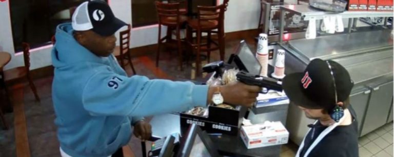Ahora la policía de Kansas busca al hombre, el que fue captado por una cámara de alta definición ubicada en la tienda Jimmy Johns.