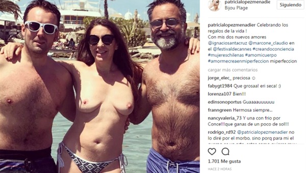 ACTITUD FUTURO Paty López desafía censura de Instagram con foto en topless en Francia Por Equipo Futuro | 22 May, 2017. 00:20 hrs La actriz chilena compartió la imagen con el mensaje #amomicuerpo. La actriz chilena Patricia López aprovechó las playas de Bijou Plage, Francia, para dar rienda suelta a un topless que quiso compartir con sus seguidores en Instagram. «¡Celebrando los regalos de la vida! Con mis dos nuevos amores @ignaciosantacruz @marcone_claudio en el @festivaldecannes #creandoconciencia #mujereschilenas #amomicuerpo #amormecreaenmiperfeccion #miperfeccion», escribió en su cuenta, junto a la foto. Minutos después, Instagram bajó la foto de López, quien participó del festival de Cannes, acusando que «no cumple con nuestras normas comunitarias». Fue una linda experiencia. Me guardo en el corazón sus bellos comentarios de apreciación. Empecemos a amarnos exactamente como somos! Un gran abrazo! #creandoconciencia #amormecreaenmiperfeccion #amomicuerpo #sistemaisha #revolucióndelaconciencia Una publicación compartida de Patricia Lopez-Menadier (@patricialopezmenadier) el 22 de May de 2017 a la(s) 2:40 PDT Conductora de noticias en Rusia sufrió inesperada interrupción mientras estaba al aire y se convierte en viral Hilarante video de los efectos secundarios de "Despacito" en tres amigos italianos se convierte en viral Sigue a FUTURO.cl en Google Discover Recibe nuestros contenidos directamente en tu feed. Seguir en Google Contenido patrocinado