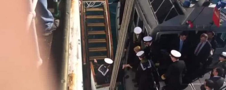 ACTITUD FUTURO Presidenta Michelle Bachelet tropezó mientras subía a la Esmeralda Por Equipo Futuro | 03 May, 2017. 00:44 hrs Revisa video. Esta mañana, un particular momento vivió la Presidenta Michelle Bachelet mientras llegaba a visitar el Buque Escuela Esmeralda, que zarpará este domingo. Mientras llegaba en una lancha de la Armada y era asistida para cruzar al barco por una escalera, la mandataria cayó al alcanzar el otro lado, incorporándose rápidamente y subiendo a toda velocidad para que nadie se diera cuenta del percance que sufrió. Revisa video, gentileza de ADN, a continuación… Luego del pequeño incidente, la Presidenta firmó el libro de visitas y deseó un buen viaje a los 266 hombres y 27 mujeres a bordo. Pdta. @mbachelet firma el libro de visitas del Buque Escuela Esmeralda, que este domingo zarpa con 266 hombres y 27 mujeres a bordo. pic.twitter.com/3WnH5NFFKP — Prensa Presidencia (@presidencia_cl) 3 de mayo de 2017 Martín Cárcamo y Polo Ramírez protagonizaron absurdo duelo metalero en televisión Revisa primer trailer de "The Defenders", nueva serie de Marvel y Netflix Sigue a FUTURO.cl en Google Discover Recibe nuestros contenidos directamente en tu feed. Seguir en Google Contenido patrocinado