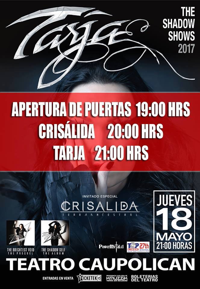 ENTREVISTAS Tarja en Chile: “Ahora estoy haciendo más música que nunca antes” Por Equipo Futuro | 17 May, 2017. 16:45 hrs La cantante habló con Futuro antes de presentarse este jueves 18 de mayo en el Teatro Caupolicán. Por Jorge I. Lagás Tarja Turunen está de vuelta en nuestro país, para dar un concierto este jueves 18 de mayo en el Teatro Caupolicán de Santiago, con los chilenos Crisálida como banda invitada, desde las 20 hrs. Lo hace mostrando su último disco “The shadow self”, una nueva aventura en la carrera de este referente femenino del metal sinfónico, que ya se extiende por casi 20 años, desde que empezó con Nightwish. “Chile siempre está en mi corazón, tengo una relación muy buena e importante con mis fans. La pasión que tienen en torno a mi música es increíble, me siento muy privilegiada”, comentó Tarja sobre el fuerte vínculo que ha forjado con su fanaticada local en todo este tiempo. En cuanto a su presente, marcado por “The shadow self”, lo describe como una etapa “bien heavy, bien pesada. Pero también más abierta, más progresiva. Estoy componiendo más música ahora que nunca antes. Es un camino largo que tengo que seguir y estoy aprendiendo mucho”. Revisa la conversación a continuación, y los horarios de la jornada: W.A.S.P. lanzó trailer de "Re-Idolized", lanzamiento que incluirá película nunca antes vista de "The Crimson Idol" "Big Boys": Lanzan primer videoclip del disco postumo de Chuck Berry Sigue a FUTURO.cl en Google Discover Recibe nuestros contenidos directamente en tu feed. Seguir en Google Contenido patrocinado VIDEOS RELACIONADOS Así se vivió al aire en #FuturoPSP la noticia de la muerte del legendario Ace Frehley de Kiss “Gracias por mantener vivo el rock”: la conversación de “Pirincho” Cárcamo y el Presidente Boric en La Moneda «Juan Sutil será un buen candidato de Chile Vamos»: Franco Parisi aseguró que Evelyn Matthei bajará su candidatura presidencial «Nunca he hablado con Tomás Mosciatti. Si me lo encontrara, me desmayo. Me ‘hago’ de todo»